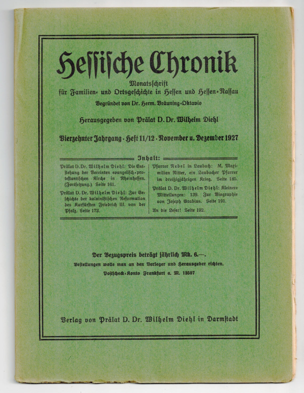 Monatsschrift für Familien- und Ortsgeschichte in Hessen und Hessen-Nassau. Hrsg. von Wilhelm Diehl. 14. Jahrgang, Heft 11/12.