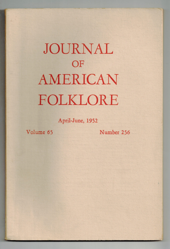 Vol. 65. No. 256. April-June 1952. Published by the American Folklore Society.