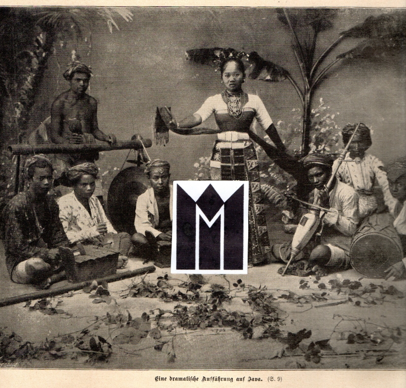 * Ansicht: "Eine dramatische Aufführung auf Java" (Autotypie von Meisenbach, 18,4 x 23,4 cm). Gruppe einer Tanz-Pantomime, meist sitzend. - A dramatic performance in Java. Group of a dance pantomime, mostly seated. * (Ein Titel aus unserem Online-Katalog "Geographie - Asien").