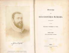 * Mit zwei montierten Orig.-Photographien von J. Höflinger. Der Band enthält die Abhandlungen "Andreas Ryff" (Andreas Heusler-Ryhiner, S. 1-182), "Basels Theilnahme an dem niederländischen Kriege von 1488" (Andreas Heusler-Sarasin, S.183-216), "Die Eroberung des Aargaus 1415" (Hans Frey, S. 217-290), "Luther und der Koran vor dem Rathe zu Basel" (Karl Rud. Hagenbach, S. 291-326), "Der Kirchengesang in Basel seit der Reformation" (Chr. Joh. Riggenbach, S. 327-524). - Das Vorwort datiert in "Basel, den 21. Dezember 1869. Wilhelm Vischer, d. Z. Präsident der Gesellschaft".