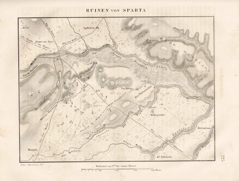 * Auf der Tafel die "Ruinen von Sparta" als feine Karte (15,7 x 21,1 cm, Einfassung).