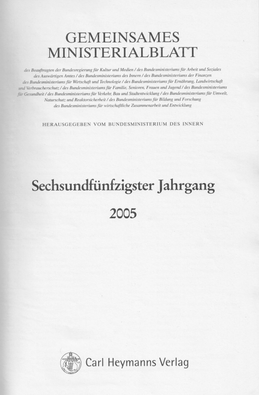 des Auswärtigen Amtes / des Bundesministeriums des Innern / des Bundesministeriums der Finanzen / des Bundesministeriums für Wirtschaft und Arbeit / des Bundesministeriums für Verbraucherschutz, Ernährung und Landwirtschaft / des Bundesministeriums für Familie, Senioren, Frauen und Jugend / des Bundesministeriums für Gesundheit und Soziale Sicherung / des Bundesministeriums für Umwelt, Naturschutz und Reaktorsicherheit / des Bundesministeriums für Verkehr, Bau- und Wohnungswesen / des Bundesministeriums für Bildung und Forschung / des Bundesministeriums für wirtschaftliche Zusammenarbeit und Entwicklung, des Beauftragten der Bundesregierung für Kultur und Medien. [Zum Teil:] Herausgegeben vom Bundesministerium des Innern. 12.-60. Jahrgang (ohne 58.). 1966-2009 (ohne 2007). Zus. 44 Bände.