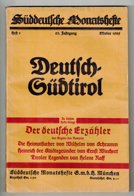 23. Jahrgang. Heft 1. Oktober 1925. Deutsch-Südtirol.