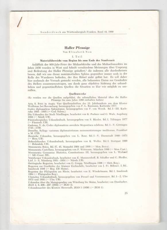 (Schwäbisch Hall) 1960. S. 25-62. Gr.-8°. - Geheftete Druckbogen. - Mehr nicht erschienen.