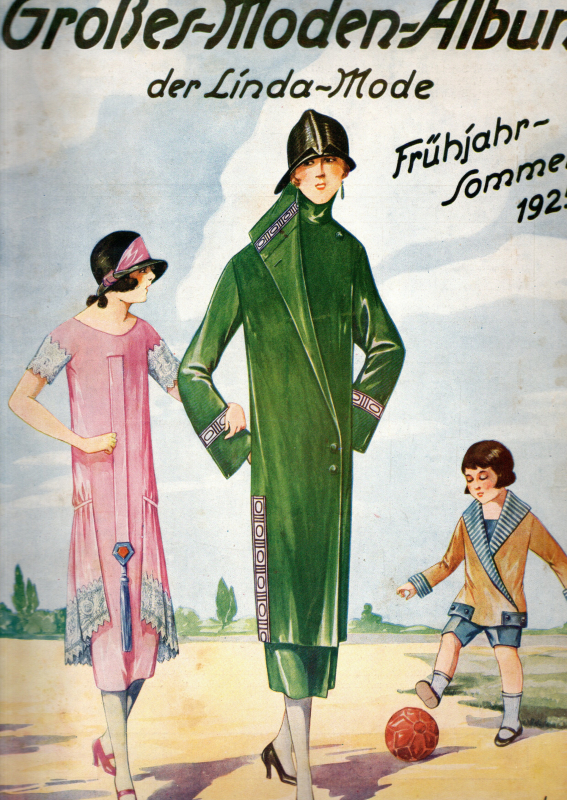 * Ein phantastischer Katalog mit 643 Artikel.der Zwanziger Jahre. - "Von der Frühjahrsmode", "Für den Sport", "Farbige Sommermode" (Kleider, Straßenanzüge für Damen usw.), "Hauskleidung", "Morgenröcke", "Kindermode", "Zur Konfirmation", farbige Bilder mit Mode im Backfisch-Alter, "Mäntel für Knaben", "Neues von der Wäsche" [7 Seiten Miederwaren] , "Mädchenwäsche", "Für das Kleinste", für junge Männer von der "Bürojacke" bis zum Pyjama. - "Die Linda-Mode / Neueste Deutsche Mode". * (Ein Titel aus unserem Online-Katalog "Kunst - Mode, Textilien, Teppiche").