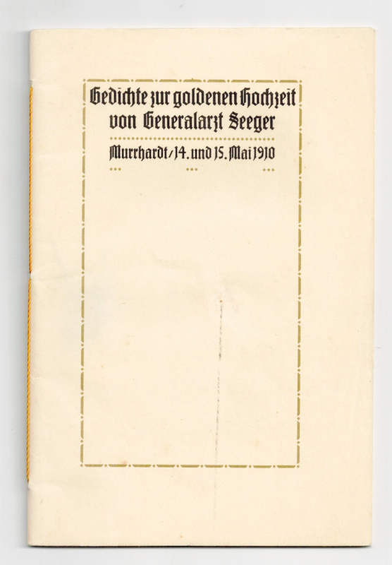 Gedichte zur goldenen Hochzeit von Generalarzt Seeger.
