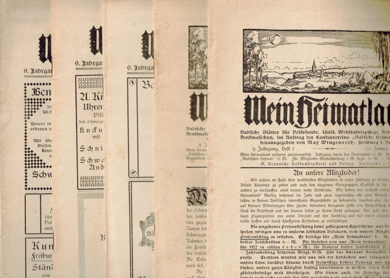 * Später auch unter dem Titel Mein Heimatland. Badische Blätter für Volkskunde, ländliche Wohlfahrtspflege, Denkmal- und Heimatschutz bzw. Familienforschung, Heimatschutz und Denkmalpflege.