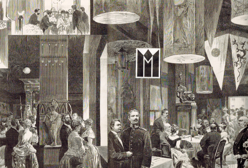 * Das damals berühmteste und beliebteste sogenannte Künstler-Weihnachts- oder Carnevalsfest in Kroll's Etablissement zu Berlin (schon damals einen "ungewöhnlich hoch angesetzten Eintrittspreis"): Geschmückter Saal mit chinesischen Lampions usw., Stehempfang, Tischgesellschaften usw. in den Räumlichkeiten. (Anonymer Holzstich "Vom Winterfest des Vereins berliner Künstler" nach Zeichnung von C. Koch. Berlin. 23,1 x 33,5 cm). - Krolloper.