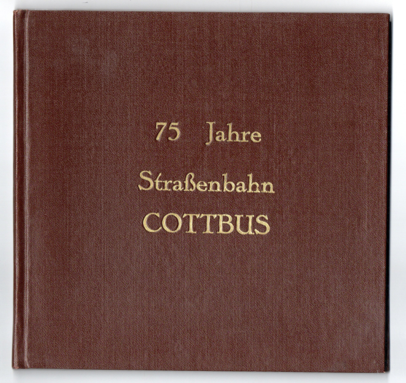 Cottbus, VEB Cottbusverkehr 1976. 32 S. Brauner Leinenband mit geprägten Goldtitel (Deckel leicht deformiert). - Innen sehr guter Zustand. - Privatband (?) ohne den illustrierten Umschlag (liegt als Kopie bei).