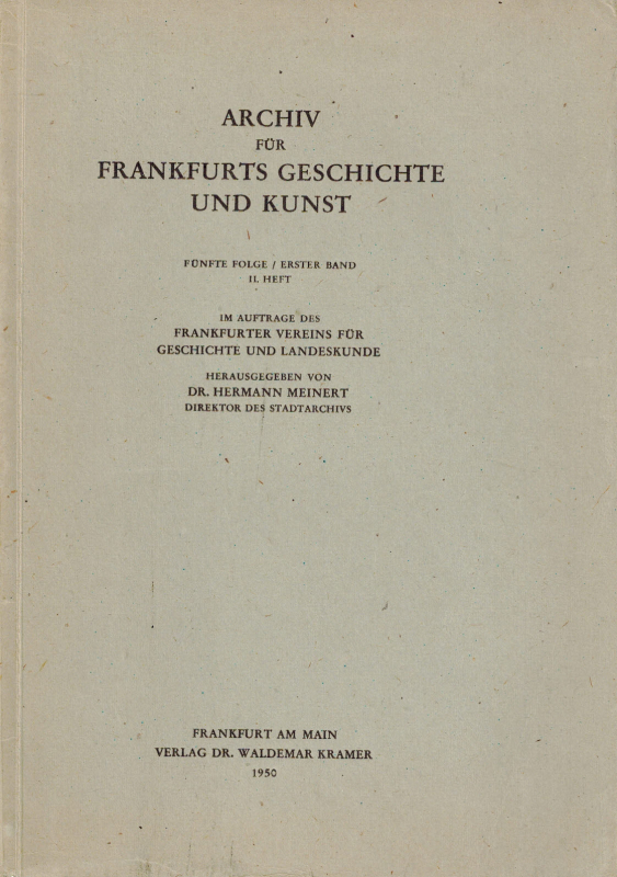 Fünfte Folge. Erster Band II. Heft. Im Auftrage des Frankfurter Vereins für Geschichte und Landeskunde. Hrsg. von Hermann Meinert. Mit 14 Abb.