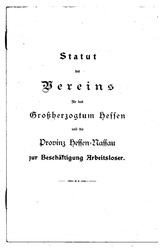 Statut des Vereins für das Großherzogtum Hessen und die Provinz Hessen-Nassau zur Beschäftigung Arbeitsloser.