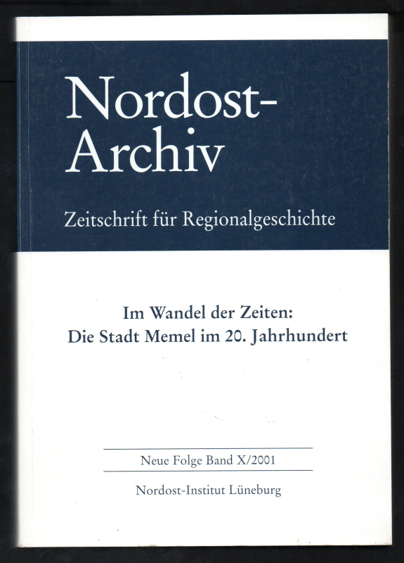 Lüneburg, Nordost-Institut 2001. 570 S. Gr.-8°. Orgi.-Kartonband. (Nordost-Archiv. Zeitschrift für Regionalgeschichte, Neue Folge X/2001). - Sehr guter Zustand, lediglich Titelblattoberrand mit Namen.