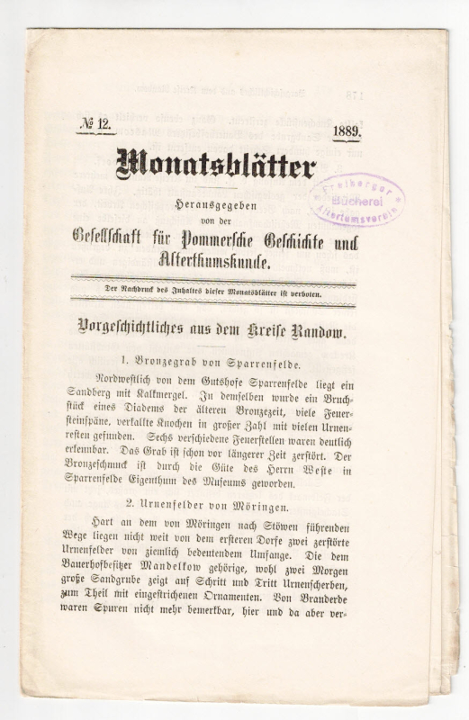 Monatsblätter. Hrsg. von der Gesellschaft für Pommersche Geschichte und Alterthumskunde.