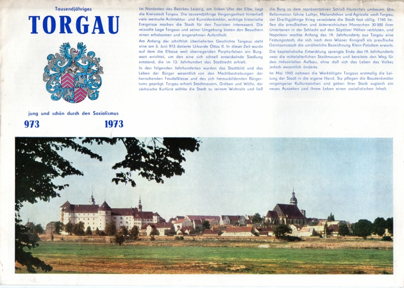 Tausendjähriges Torgau, jung und schön durch den Sozialismus. 972. 1973. Mit 27 farb. Abb. und Stadtplanskizze.