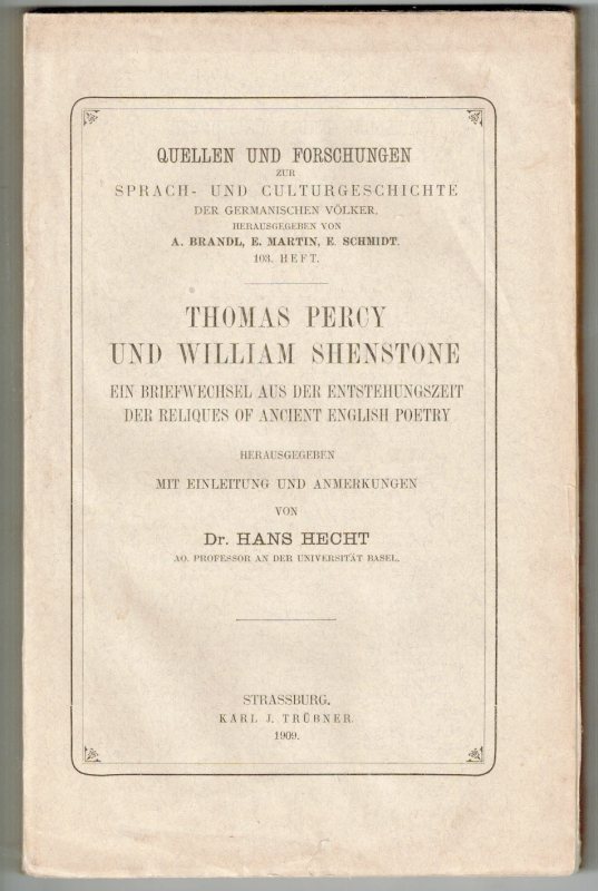 Ein Briefwechsel aus der Entstehungszeit der Reliques of Ancient English Poetry. Hrsg. mit Einleitung und Anmerkungen.