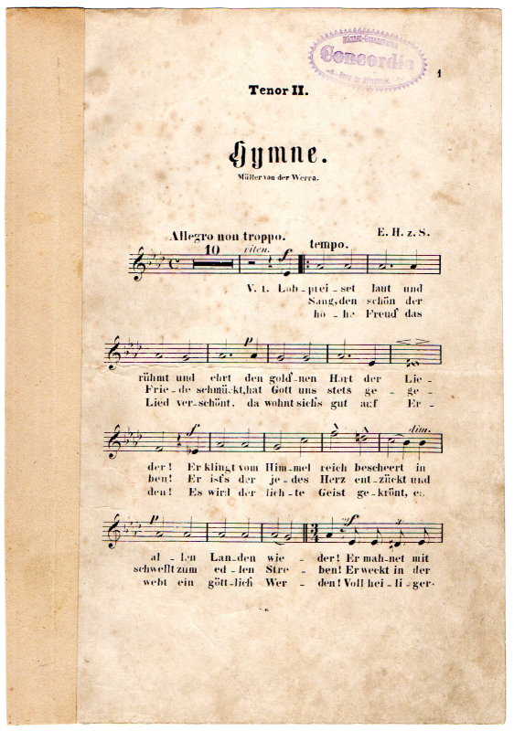 Müller von der Werra. Tenor II. Über der ersten Notenzeile ganz rechts Widmungs-Monogramm "E. H. z. S." (Ernst Herzog zu Sachsen).