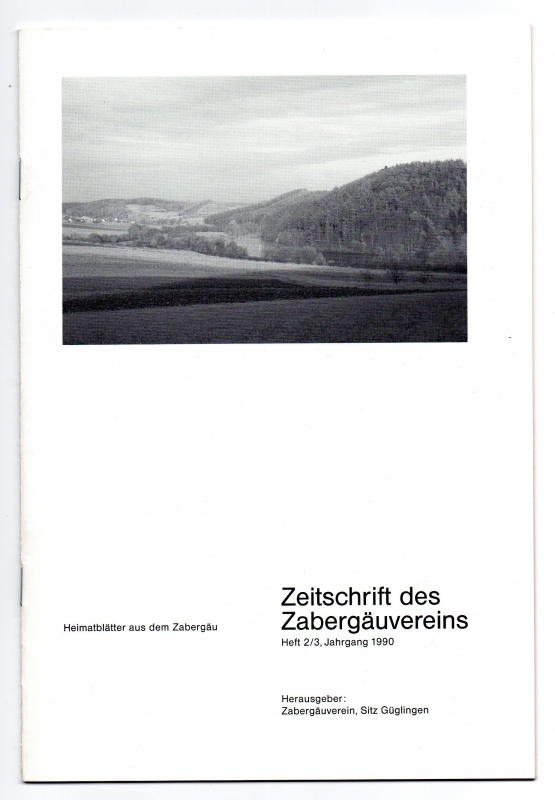 Güglingen, Zabergäuverein 1990. S. 17-48 (komplett). Gr.-8°. Illustr. Orig.-Umschlag (Motiv: Landschaftsbild um den Michelbachsee). - Sehr guter Zustand.