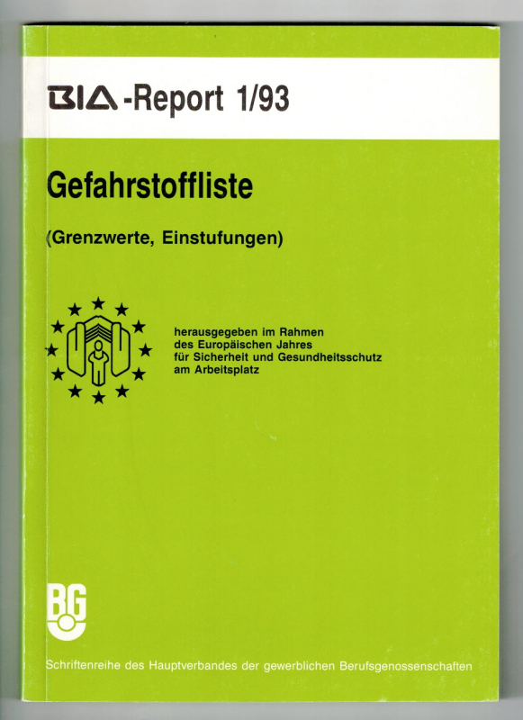 (Grenzwerte, Einstufungen). Hrsg. im Rahmen des Europäischen Jahres für Sicherheit und Gesundheitsschutz am Arbeitsplatz.