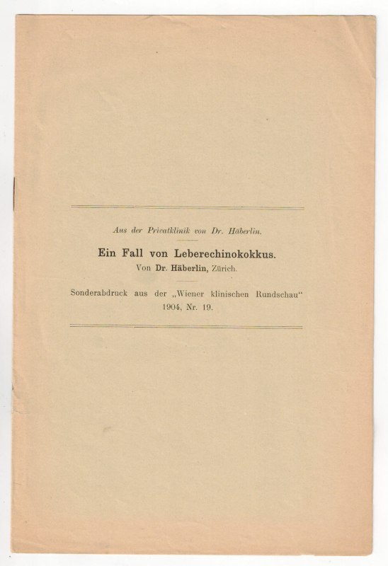 * "Von Dr. Häberlin in Zürich" (Titel). * - Kirchberg (TG) 1862 - Hedingen 1938.