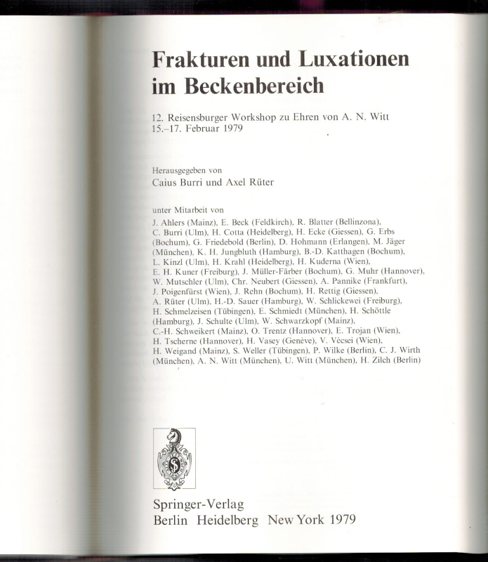 * Herausgeber waren nacheinander Arthur Hübner (Berlin), ab Heft 70 Heinrich Bürkle de la Camp (Bochum), ab Heft 118 Jörg Rehn (Bochum) und Leonhard Schweiberer (Homburg Saar). - Stichworte: Notebooks on Trauma Medicine, Surgery, Injury, Unfallchirurgie u. a.