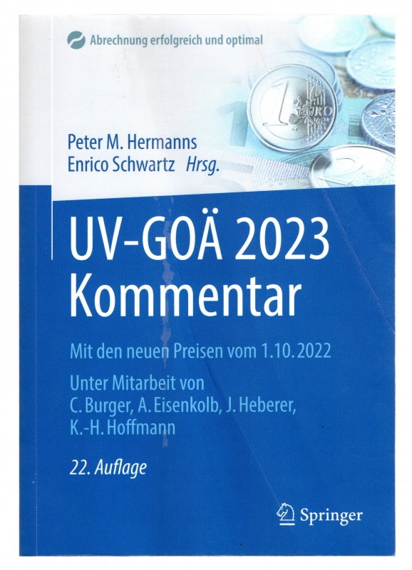 * Abrechnung erfolgreich und optimal. "Gute Leistung muß gut bezahlt werden", "Zuständigkeit auf einen Blick", "Mit allen praxisrelevanten Kommentierungen", "Abrechnung mit den Honorarerhöhungen ab 1.10.2022". * ISBN 978-3-662-66380-6 *