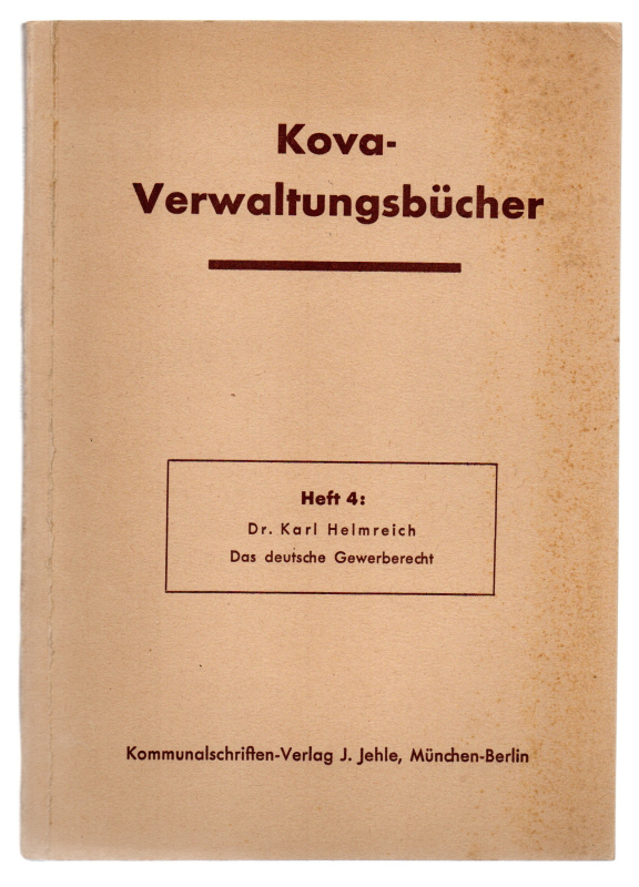 München und Berlin, J. Jehle 1943. VII, 101 S., 1 Bl. Orig.-Kartonband. (Kova-Verwaltungsbücher, 4). - Sehr guter Zustand.