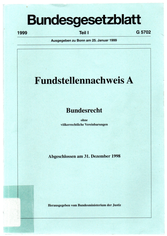 Bundesrecht ohne völkerrechtliche Vereinbarungen. Abgeschlossen am 31. Dezember 1998. Hrsg. vom Bundesministerium der Justiz.