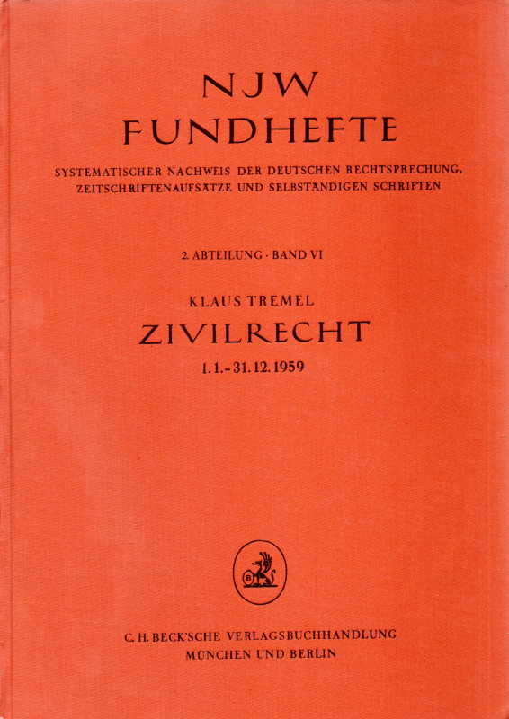 Systematischer Nachweis der Deutschen Rechtsprechung, Zeitschriftenaufsätze und selbständigen Schriften. Band VI [4]. 1961. 2. Abteilung. Zivilrecht. 1.1.-31.12.1959 mit Gesamtregistern für Band I-VI (8.5.1945-31.12.1959). Bearb. von Klaus Tremel.