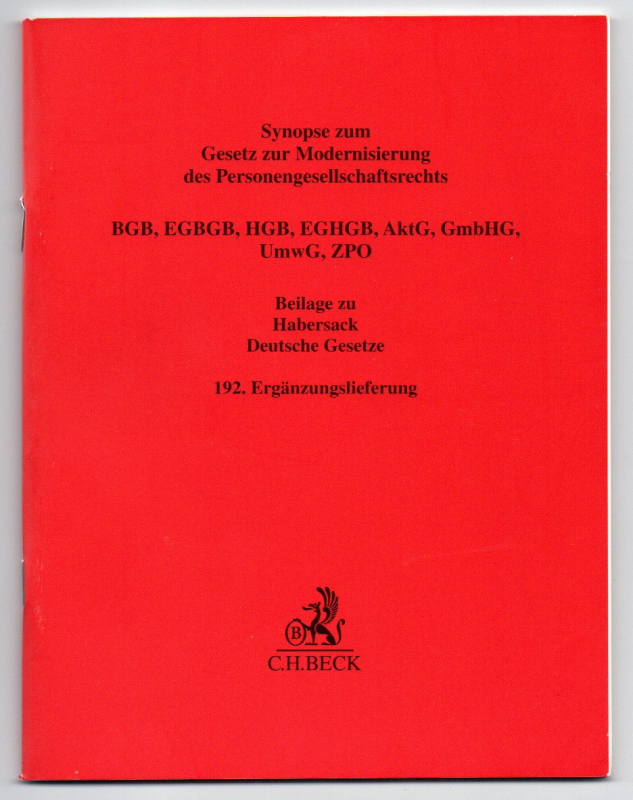 BGB, EGBGB, HGB, EGHGB, AktG, GmbHH, UmwG, ZPO. Beilage zu Habersack Deutsche Gesetze. 192. Ergänzungslieferung.
