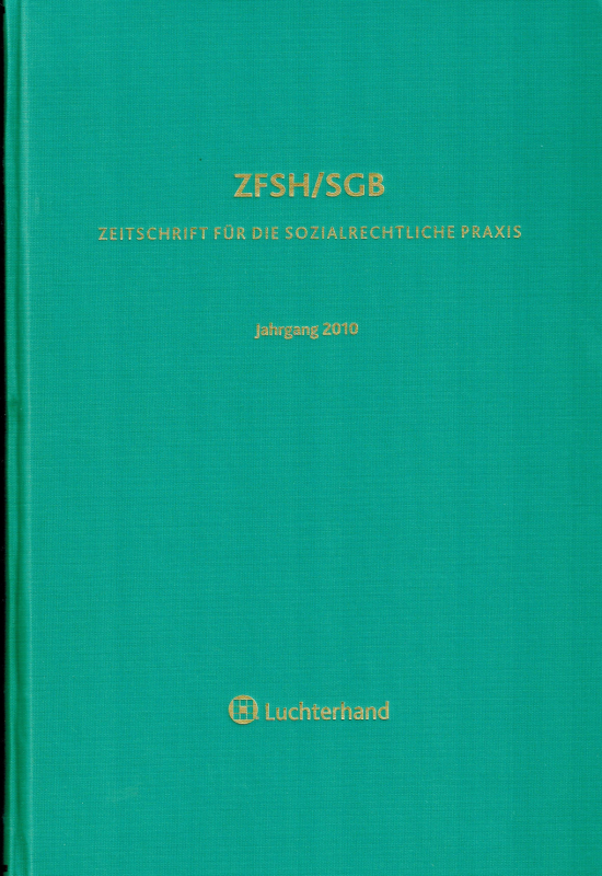 * ZfSH/SGB. Band 22.1983 beginnend als "Zeitschrift für Sozialhilfe und Sozialgesetzbuch" (Monatszeitschrift für Sozialrecht, Sozialgesetzbuch (SGB), Arbeitsrecht, Sozialhilfe, Wohlfahrtspflege, Jugendwohlfahrt und verwandte Gebiete). Anfangs ab 23.1984 mit dem Untertitel: "Monatsschrift für Sozialrecht, Sozialgesetzbuch (SGB), Arbeitsrecht, Sozialhilfe, Wohlfahrtspflege, Jugendwohlfahrt und verwandte Gebiete". 2010 "Herausgegeben von Karl-Heinz Hohm und Helmut Schellhorn. Wissenschaftlicher Beirat: Ulrich Becker, Peter Clever, Gerhard Dalichau, Hans-Jürgen Dörner, Wolfgang Gitter, Ursula Köbl, Bernd von Maydell, Heinrich Reiter, Ralf Rothkegel, Peter Schiwy, Hans F. Zacher". ([Neuwied], Luchterhand). - Derzeit kostet das Jahresabo 359 EUR. Die Schwerpunkte liegen nach Verlagsangabe bei der Grundsicherung für Arbeitsuchende, Kinder- und Jugendhilfe, Sozialhilfe, Sozialverfahrensrecht sowie Asylbewerberleistungs-, Opferentschädigungs- und Schwerbehindertenrecht.