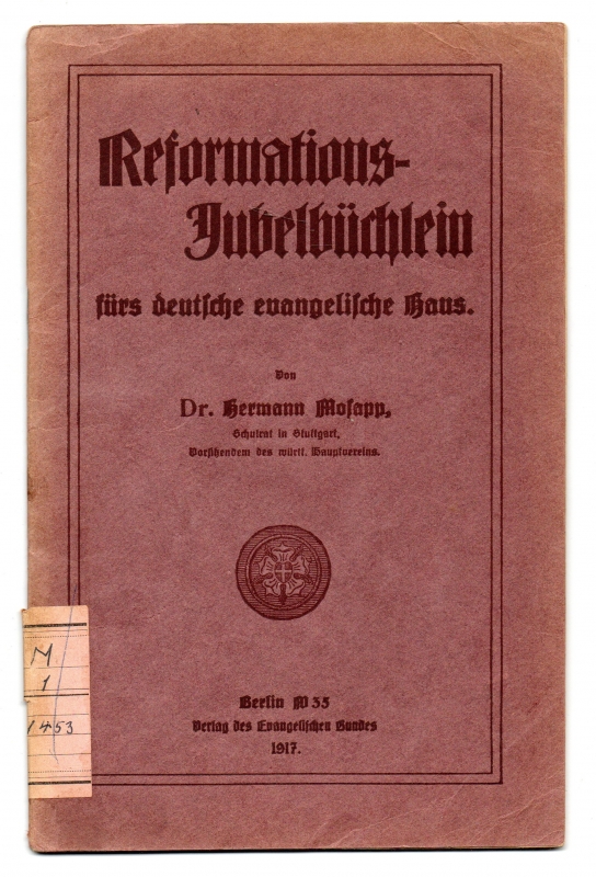 * Von "Dr. Hermann Mosapp, Schulrat in Stuttgart, Vorsitzendem des württ. Hauptvereins" (Titel). - Tägliche Andachten. * (Ein Titel aus unserem Online-Katalog "Religion - Christentum: Kirchengeschichte - Martin Luther").