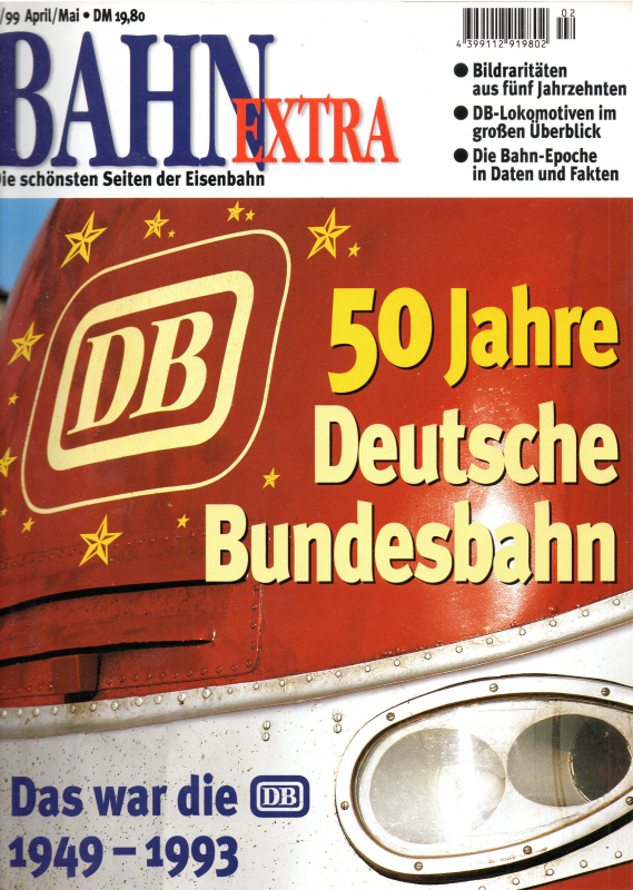 * Beiträge auf dem Umschlag genannt: "Das war die DB 1949-1993". "Bildraritäten aus fünf Jahrzehnten". "DB-Lokomotiven im großen Überblick". "Die Bahn-Epoche in Daten und Fakten", sowie weitere Abhandlungen. * (Ein Titel aus unserem Online-Katalog "Technik und Verkehr - Eisenbahn").