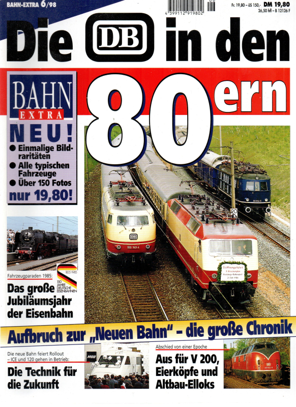 * Beiträge auf dem Umschlag genannt: "Das große Jubiläumsjahr der Eisenbahn" (Fahrzeugparaden 1985). "Die Technik für die Zukunft" (Die neue Bahn feiert Rollout - ICE und 120 gehen in Betrieb). "Aus für V 200, Eierköpfe und Altbau-Elloks" (Abschied von einer Epoche). "Aufbruch zur "Neuen Bahn" - die große Chronik", sowie weitere Abhandlungen. * (Ein Titel aus unserem Online-Katalog "Technik und Verkehr - Eisenbahn").