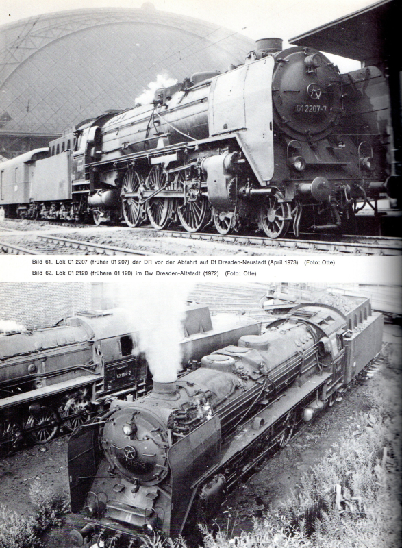 * Reichsbahn-Einheitsbauart, BR 01, 02,. 03 und 04. - Auf unserer Beispiel-Abbildung 01 Abfahrt auf Bf Dresden-Neustadt und 01 im Bw Dresden-Altstadt. * ISBN 3-440-04695-8 * (Ein Titel aus unserem Online-Katalog "Technik und Verkehr - Eisenbahn").