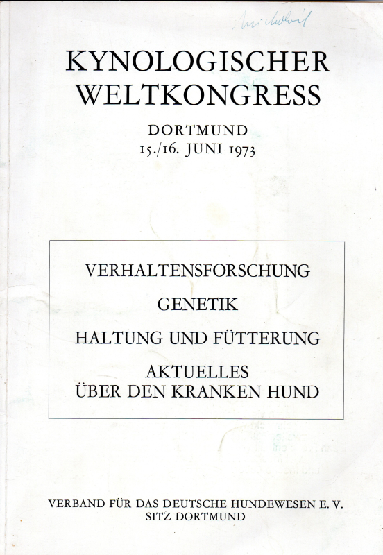 Dortmund 15./16. Juni 1973. Verhaltensforschung. Genetik. Haltung und Fütterung. Aktuelles. Über den kranken Hund. Mit Abb.