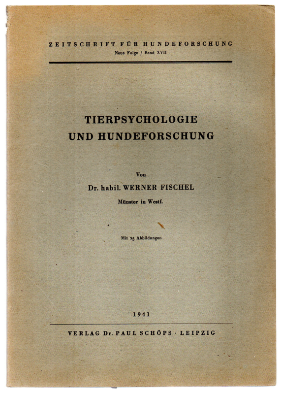 Leipzig, Paul Schöps 1941. 71 S. Gr.-8°. Orig.-Kartonband. (Zeitschrift für Hundeforschung, Neue Folge, Band XVII). - Sehr guter Zustand, lediglich Titelblattoberrand privat gestempelt.