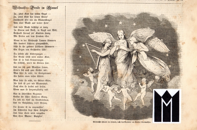 * Ansicht: "Weihnachts-Freude im Himmel, nach dem Basrelief von Berthel Thorwaldsen" (anonymer Holzstich, 14,9 x 15,3 cm, aus einer Familienzeitung d. Zt.). - Bertel Thorwaldsen (Bertel Thorvaldsen) København 1770-1844. * (Ein Artikel aus unserem Online-Katalog "Volkskunde - Jahreslauf: Weihnachten").