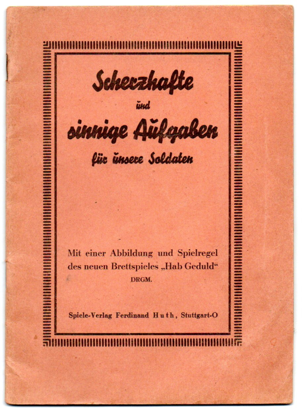 * Spielanleitung für das genannte Brettspiel auf der ersten Seite, desweiteren improvisierend zu gestaltende Spiele (Blatt Papier, mit Spielkarten usw.) als einfaches Mittel der Unterhaltung an der Front.