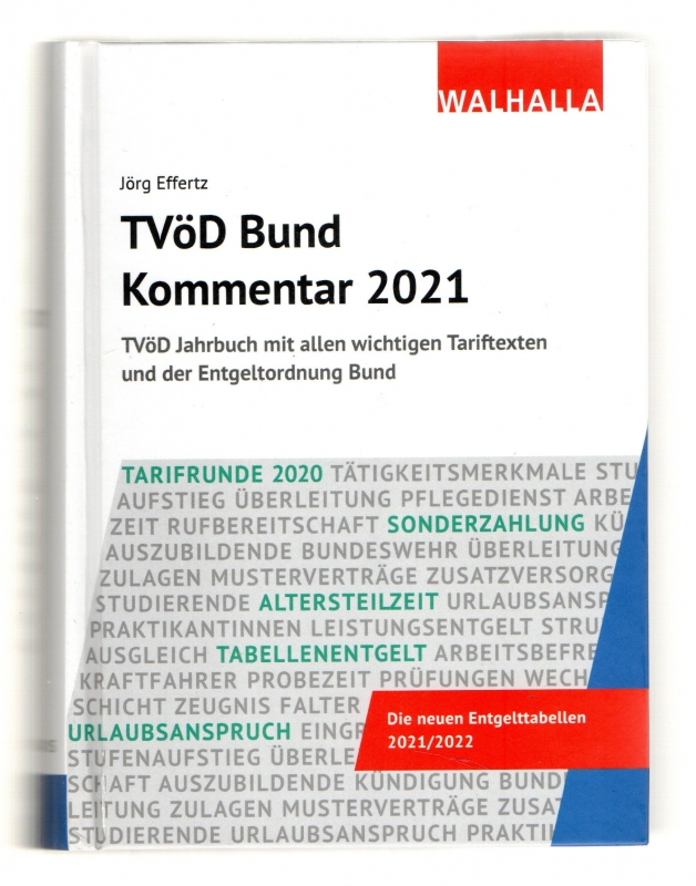 Regensburg, Walhalla u. Praetoria 2021. 1263 S. Kl.-8°. Orig.-Pbd. ("Die neuen Entgelttabellen 2021/2022"). - Sehr guter Zustand, wohl ungelesen, lediglich auf Innendeckel Strichcode-Etikett.
