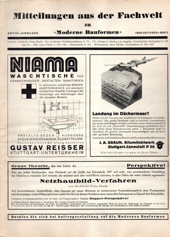 Beilage zu: Mod. Bauformen. Monatshefte für Architektur und Raumkunst, 28. Jg. 1929, Heft 10. Mit Zeichnungen und Firmenreklame..