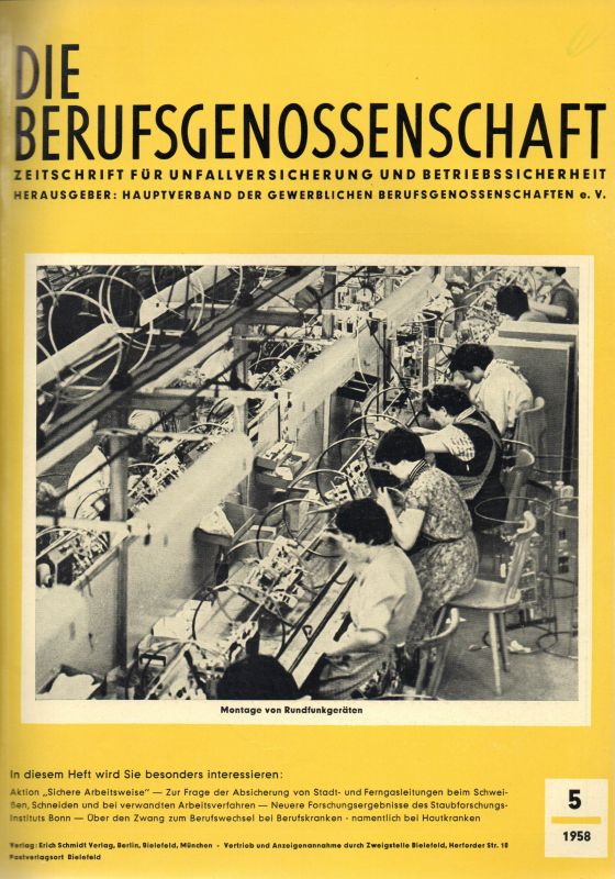 * Anfangs unter dem Titel "Die Berufsgenossenschaft. Zeitschrift für die soziale Unfallversicherung". - Als Fach-Zeitschrift das Organ des Hauptverbandes der Gewerblichen Berufsgenossenschaften e.V. und des Berufsgenossenschaftlichen Arbeitsmedizinischen Dienstes e. V. - Stichwörte: Gewerbliche gesetzliche Unfallversicherung, Sozialversicherung, Arbeitsunfälle, Berufskrankheiten.