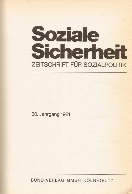 Zeitschrift für Sozialpolitik (Untertitel Titelblatt) bzw. Die sozialpolitische Monatsschrift der Gewerkschaften (Untertitel Einzelnummern). 30. Jahrgang 1981.