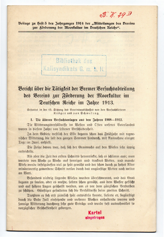 Bericht über die Tätigkeit der Bremer Versuchsabteilung des Vereins zur Förderung der Moorkultur im Deutschen Reiche im Jahre 1913.