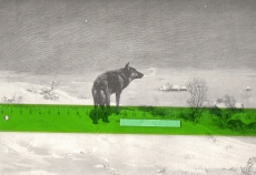 * In winterlicher Nacht steht auf einer Anhöhe über einem Dorf ein einzelner Wolf (Canis lupis) und hält Ausschau nach dem nächsten Opfer. - Alfred von Wierusz-Kowalski in München, ein polnischer Maler aus Suwalki.