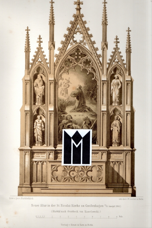 "Neuer Altar in der St. Nicolai-Kirche zu Greifenhagen a/O. (ausgef. 1862). (Altarbild nach Overbeck von Kaselowski)."